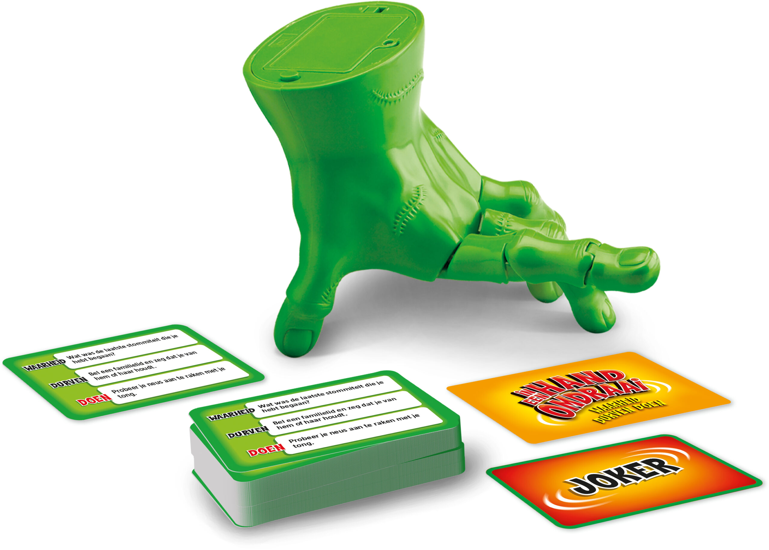 Een hand (van werkelijke grootte) verplaatst zich in cirkels op de tafel. Stopt de hand, dan wordt één van de spelers willekeurig aangewezen. Deze speler moet zich nu wagen aan een vraag gekozen door de tegenspelers: “Waarheid” of “Durven” ? Indien de speler in de opdracht slaagt, krijgt hij het kaartje. Indien niet, krijgt hij een extra uitdaging. De eerste speler die 6 kaartjes heeft, is gewonnen.