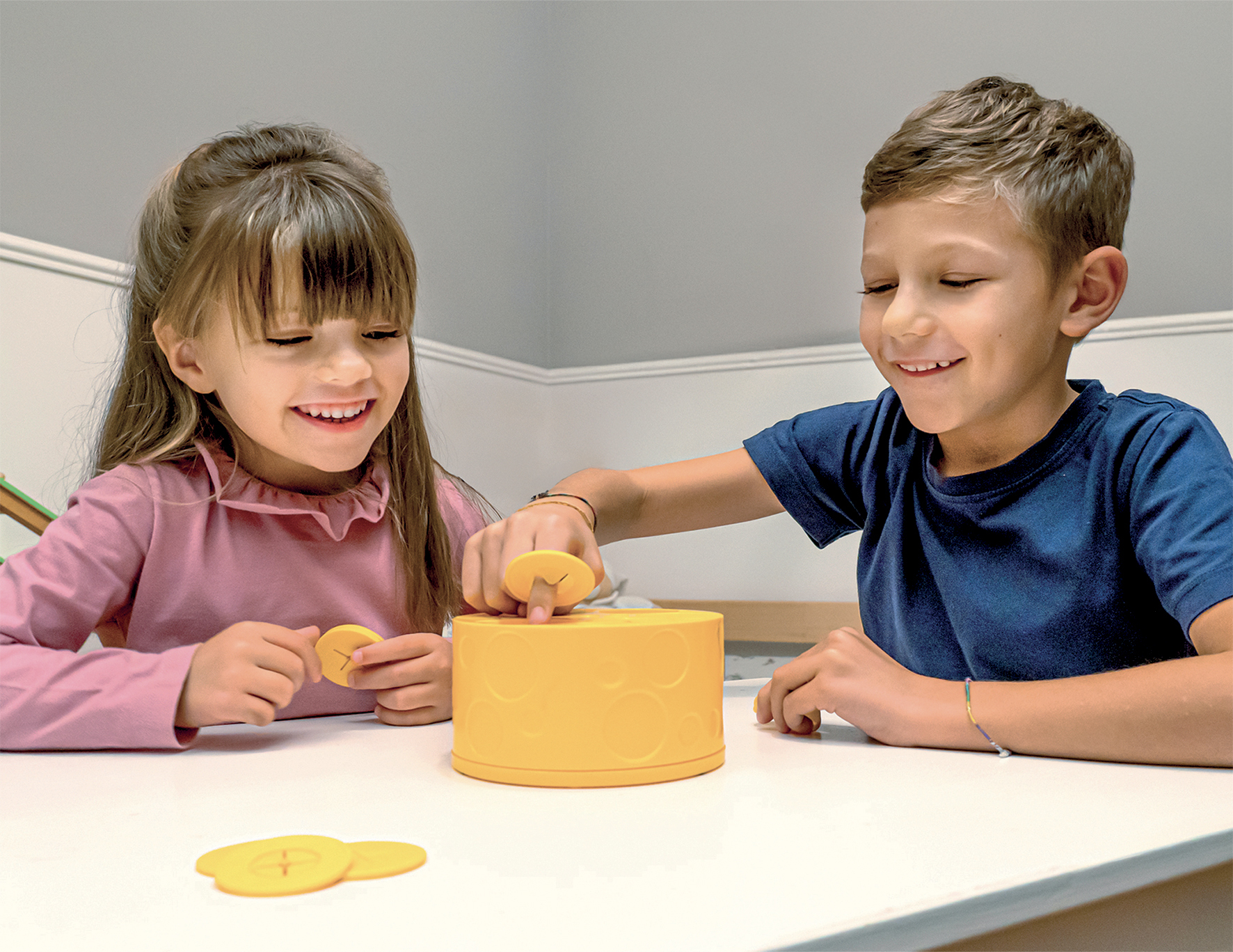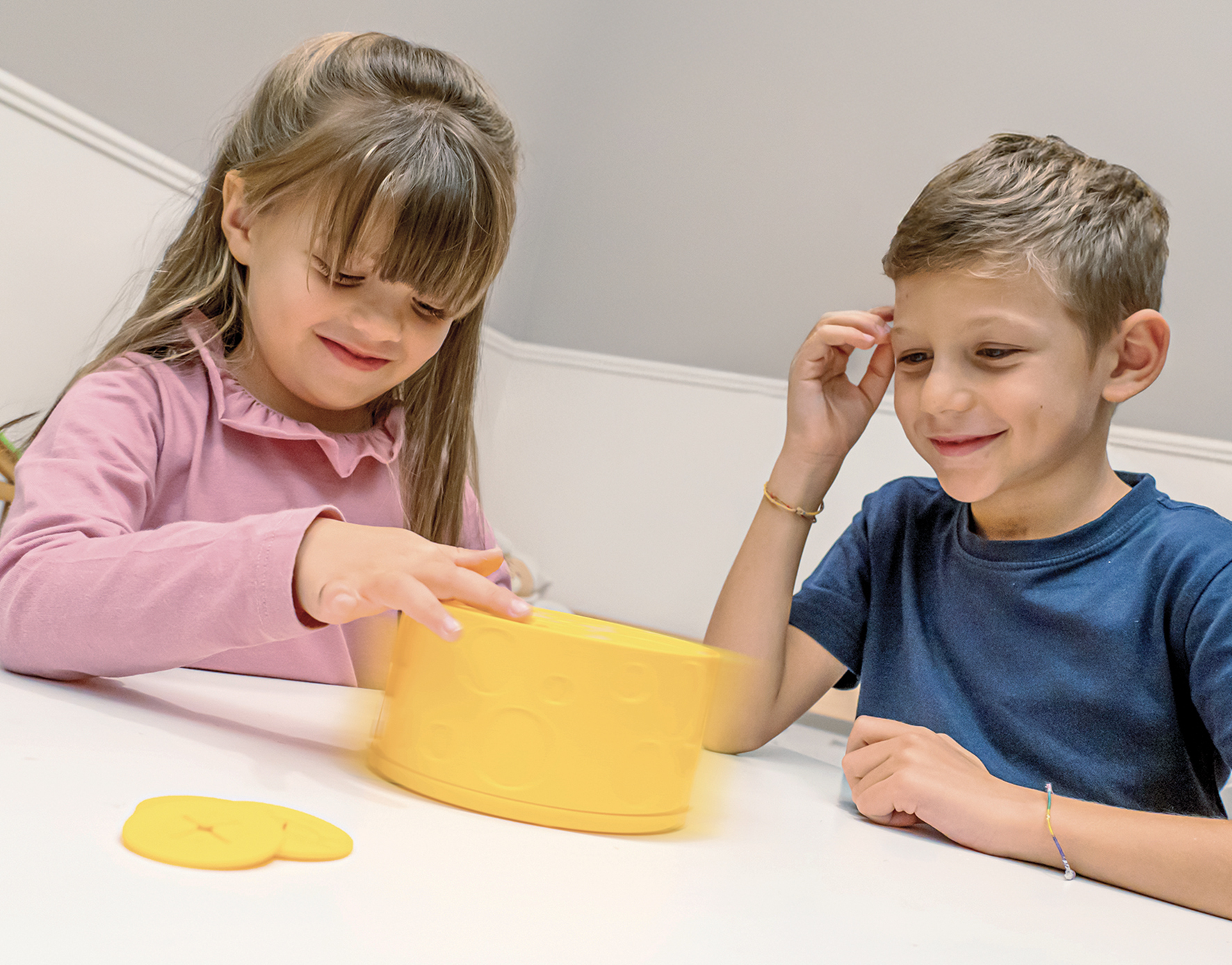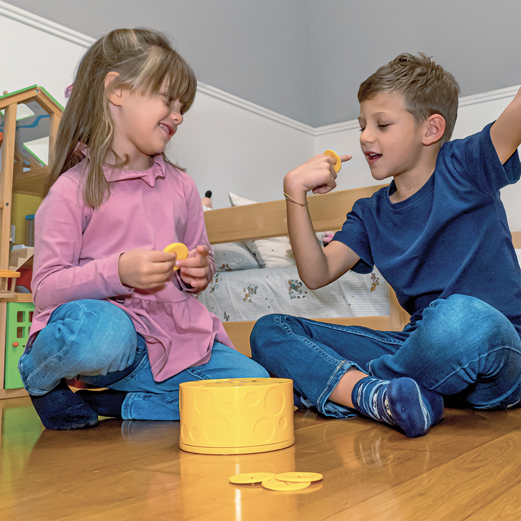 - Uniek spelmechanisme – draaiend kaaswiel met een verborgen muis